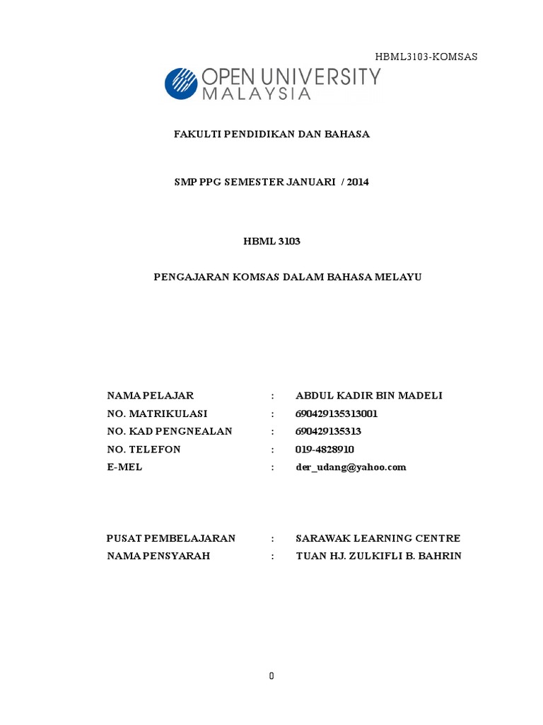Hbml3103 Pengajaran Komsas Dalam Bahasa Melayu Pdf